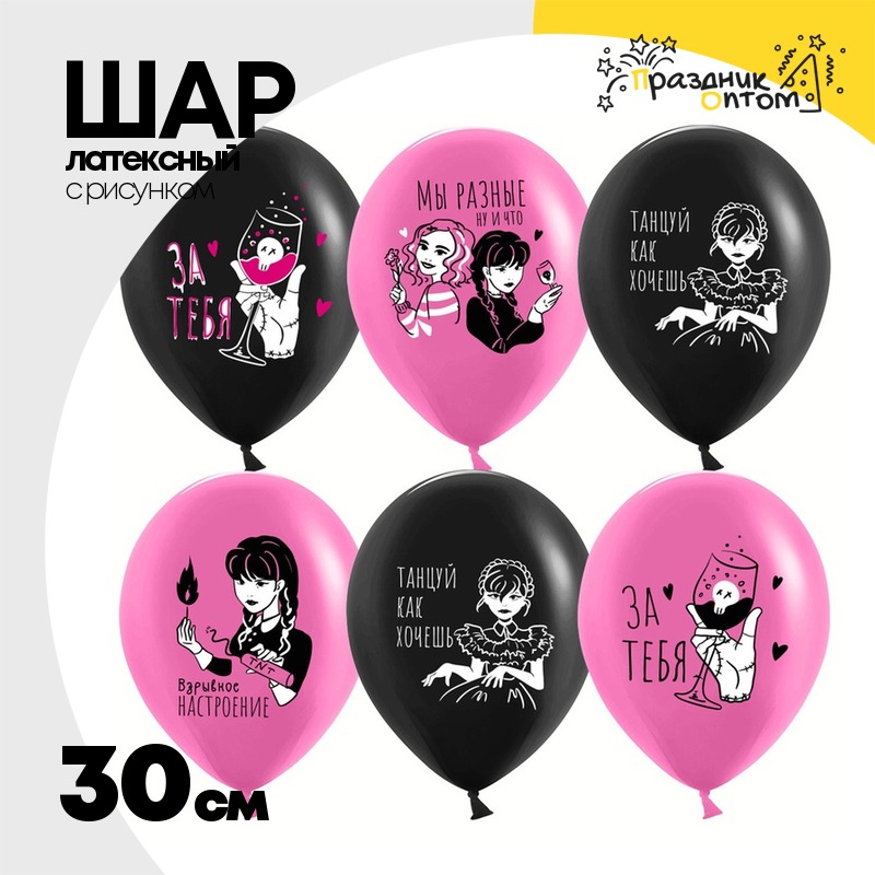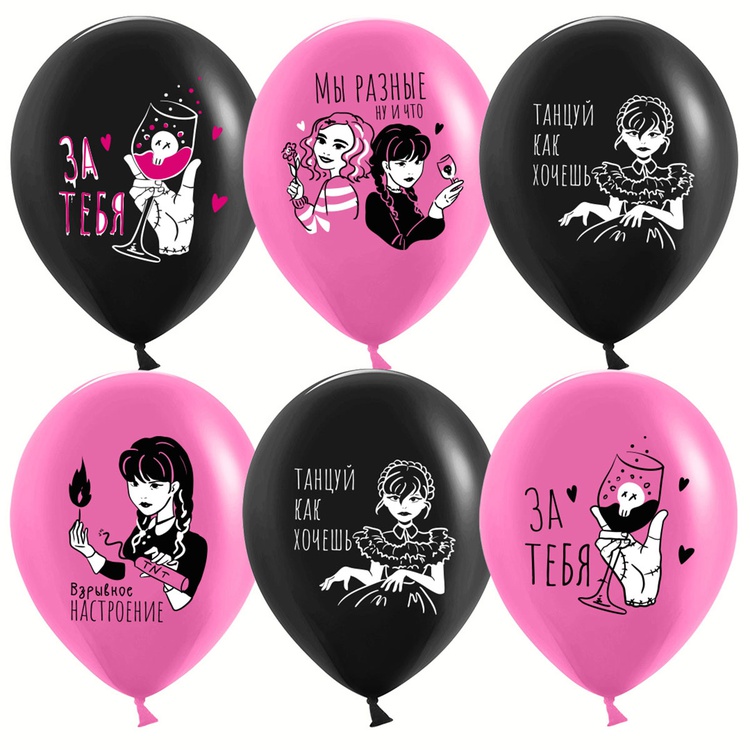 Шар латексный 30см Мрачная стори (Черный, Розовый)