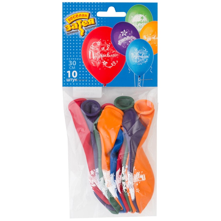 Шар латексный 30см Набор 10 шт Поздравляю! (Ассорти)