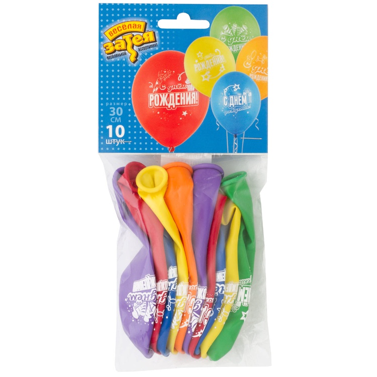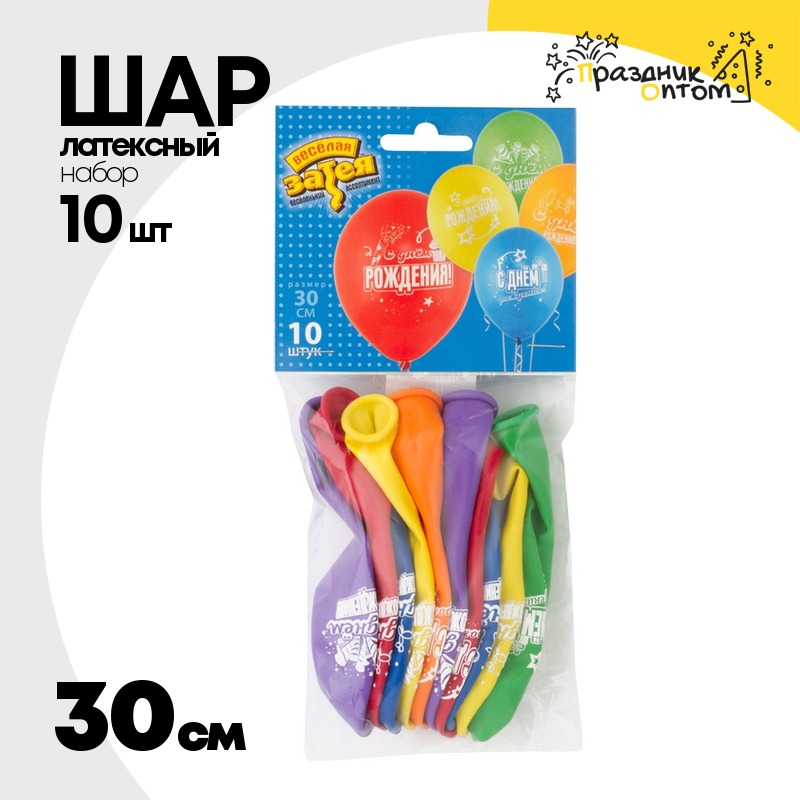 Шар латексный 30см Набор 10 шт С ДР! Звезды (Ассорти)