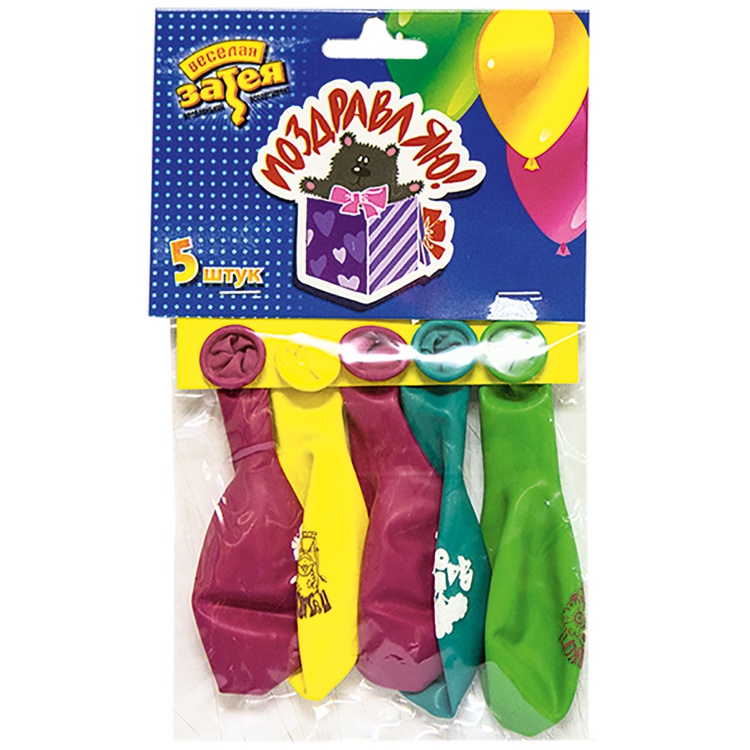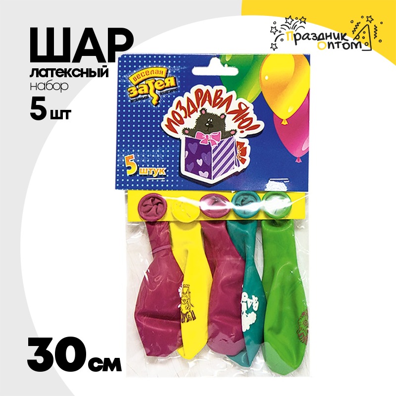 Шар латексный 30см Набор 5шт Поздравления (Ассорти)