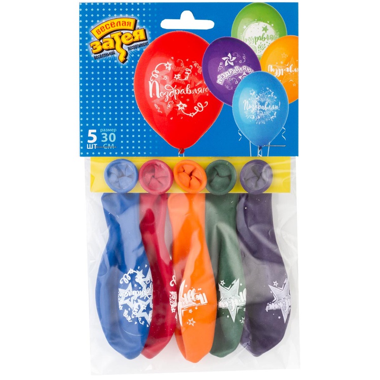 Шар латексный 30см Набор 5шт Поздравляю! (Ассорти)