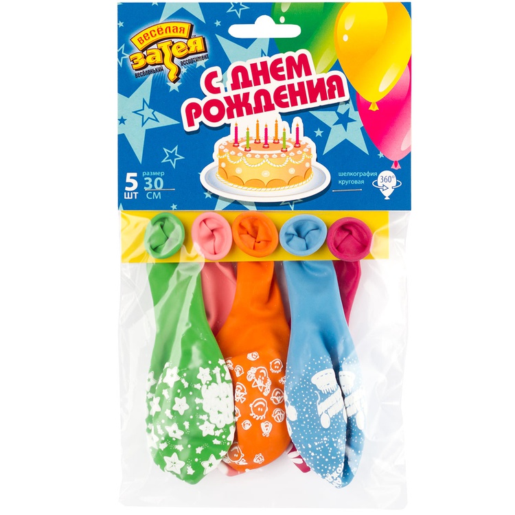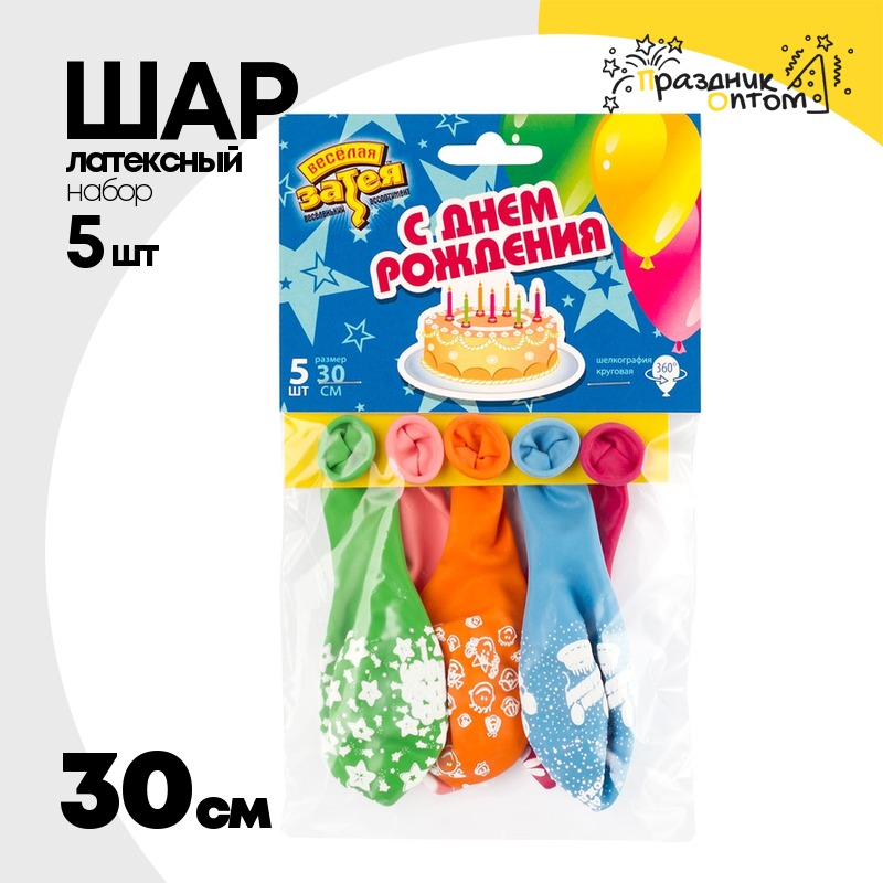 Шар латексный 30см Набор 5шт Разные (Ассорти)