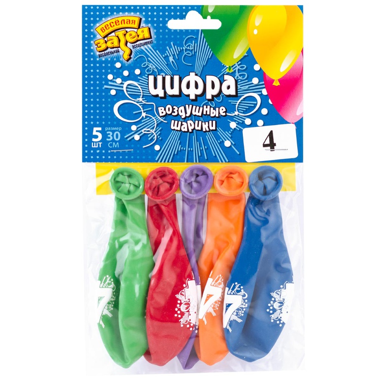 Шар латексный 30см Набор 5шт Цифра 4 (Ассорти)