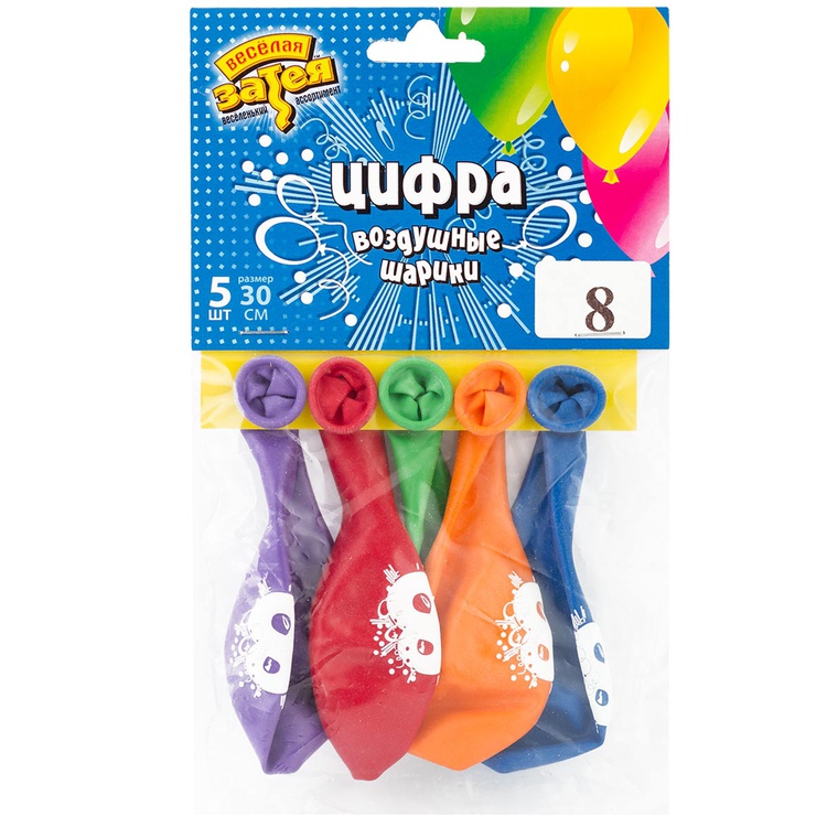Шар латексный 30см Набор 5шт Цифра 8 (Ассорти)