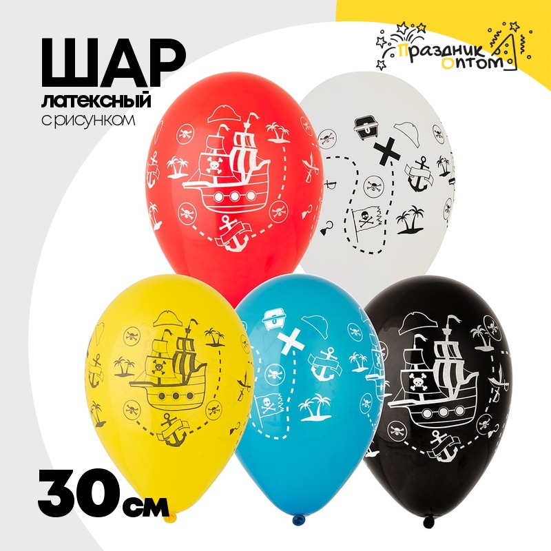 Шар латексный 30см Пиратский корабль (Ассорти)