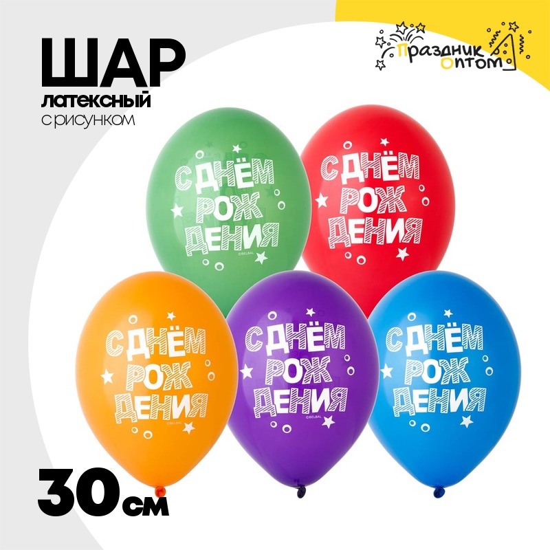 Шар латексный 30см С Днем рожд Конфетти (Ассорти)