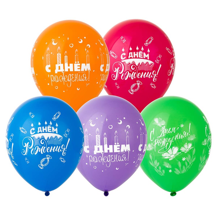 Шар латексный 30см С Днем Рождения (Ассорти)