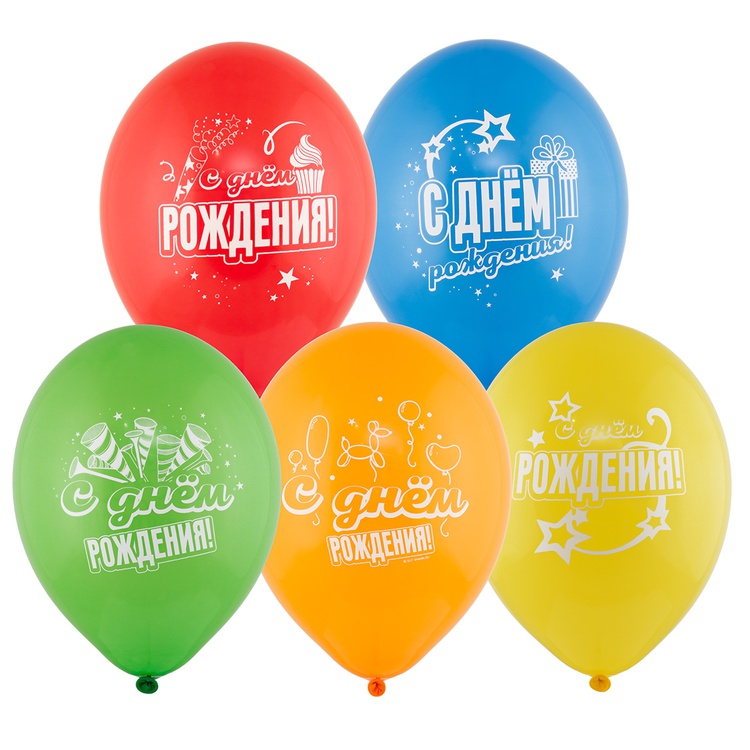 Шар латексный 30см С Днем рождения Звезды (Ассорти)