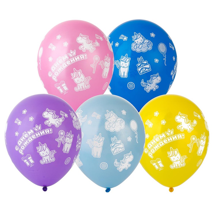 Шар латексный 30см С ДР! Единорог (Ассорти)