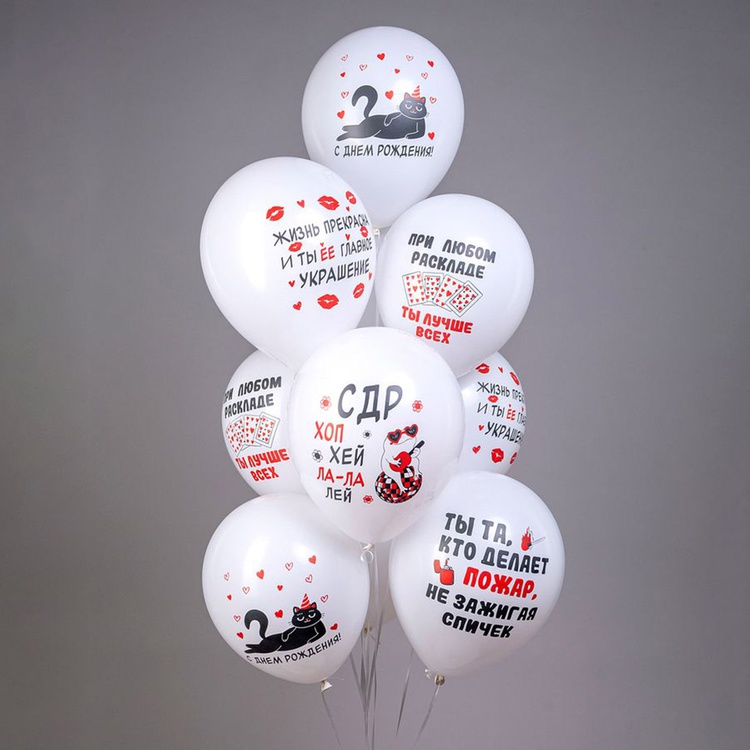 Шар латексный 30см С ДР! Хоп Хэй (Белый)