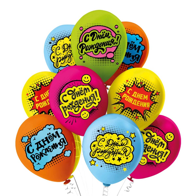 Шар латексный 30см С ДР! Комиксы (Ассорти)