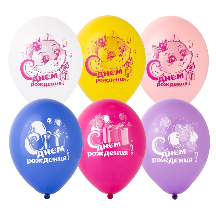 Шар латексный 30см С ДР! Котенок с Подарком (Ассорти)