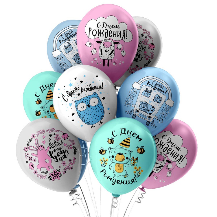 Шар латексный 30см С ДР! Лесная сказка (Ассорти)