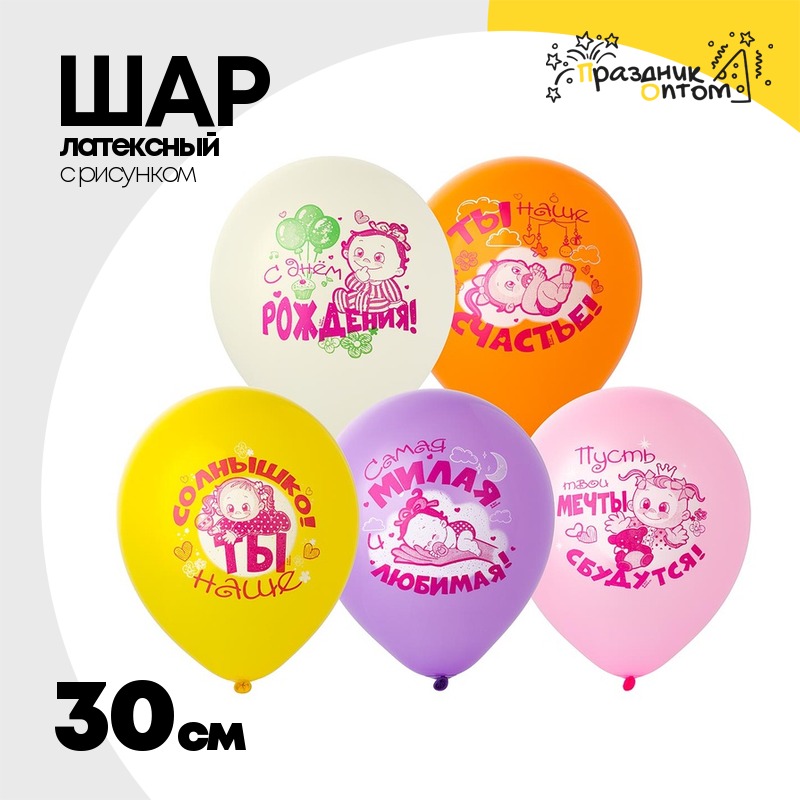 Шар латексный 30см С ДР! Малышка (Ассорти)