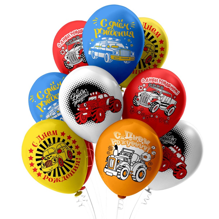 Шар латексный 30см С ДР! Машинки (Ассорти)