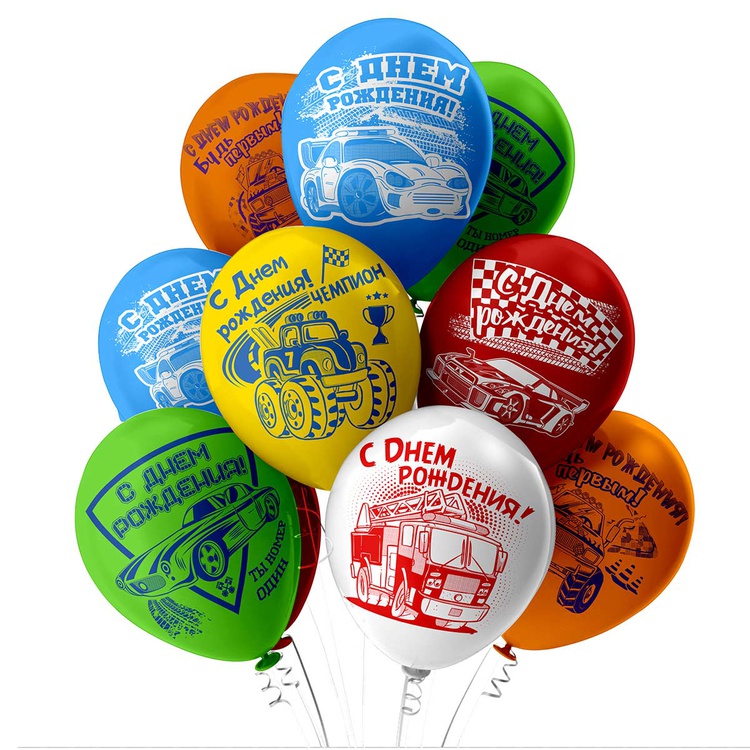 Шар латексный 30см С ДР! Машинки (Ассорти)