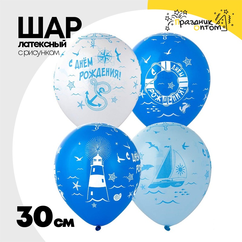 Шар латексный 30см С ДР! Море Зовет (Белый)