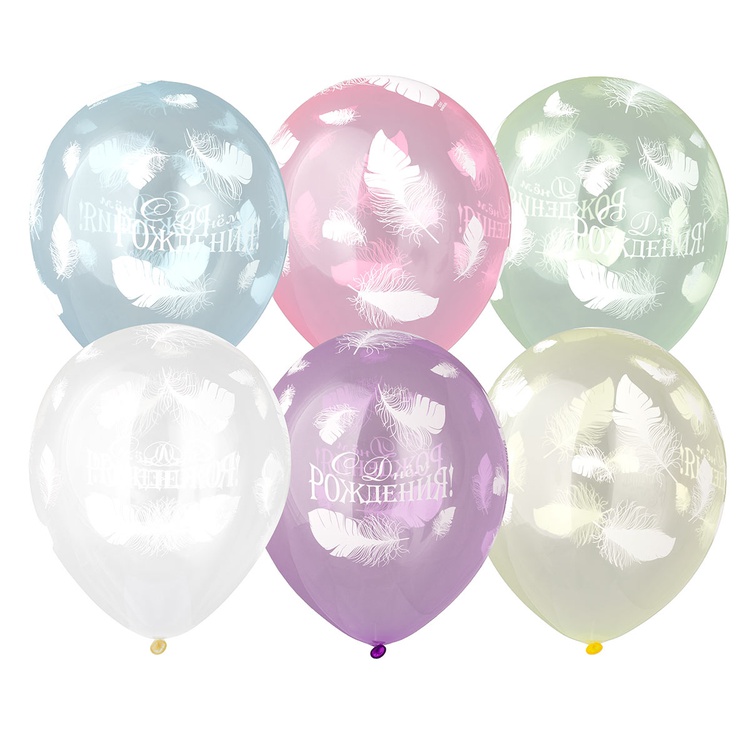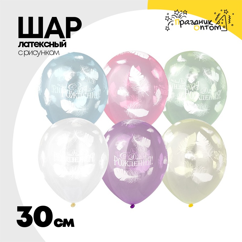 Шар латексный 30см С ДР! Перья (Ассорти)