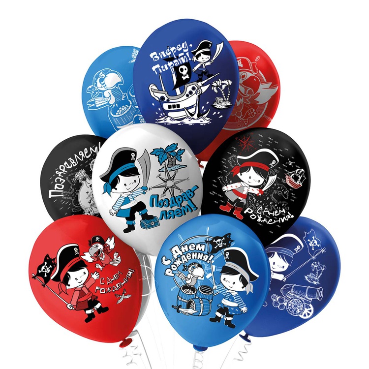 Шар латексный 30см С ДР! Приключ пирата (Ассорти)