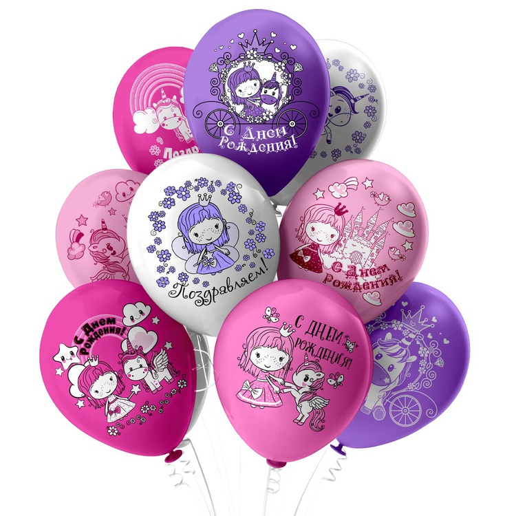 Шар латексный 30см С ДР! Принцесса Единорог (Ассорти)