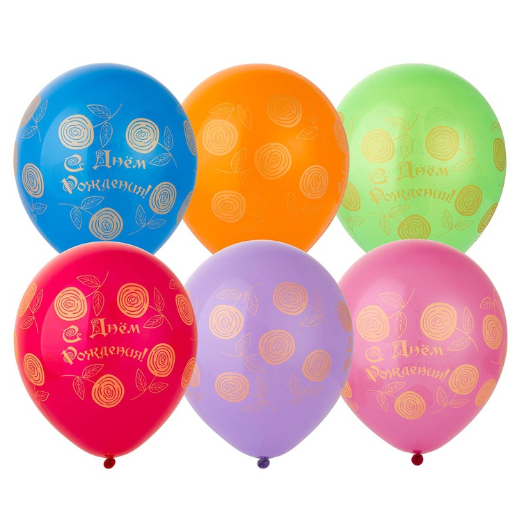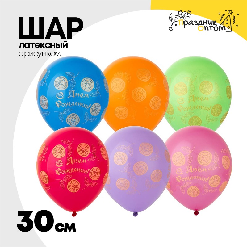 Шар латексный 30см С ДР! Розы золот (Ассорти)