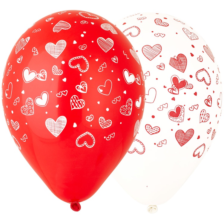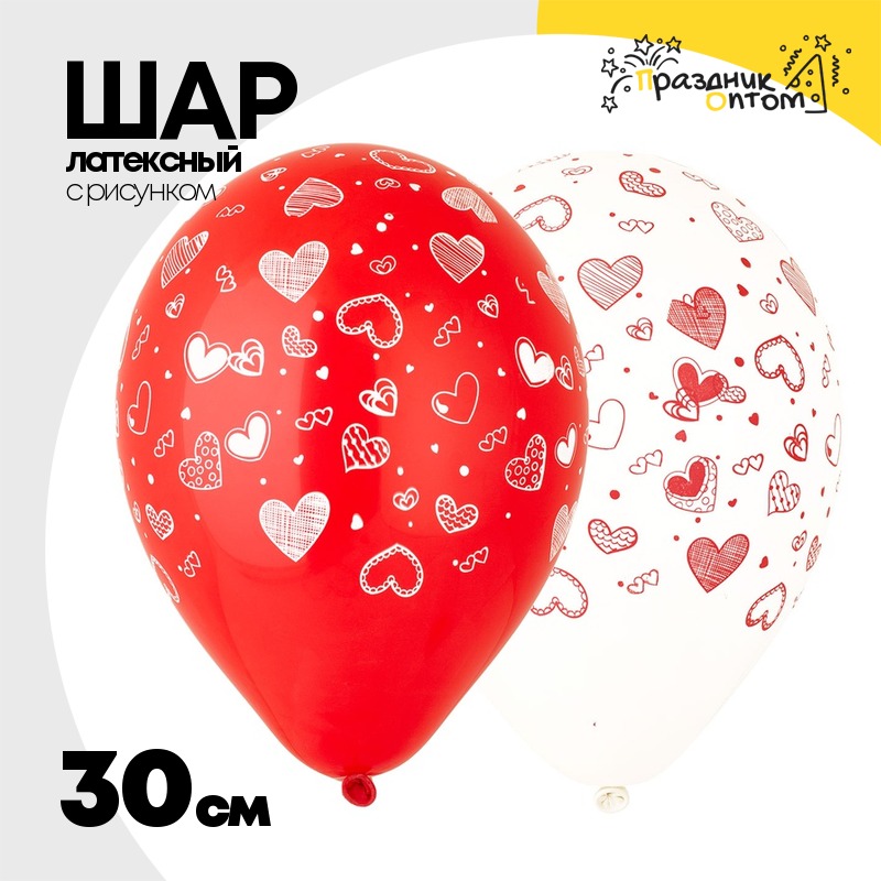 Шар латексный 30см Сердечки (Красный)