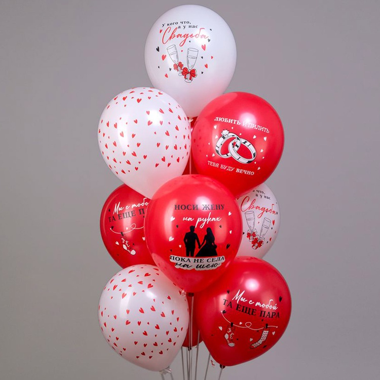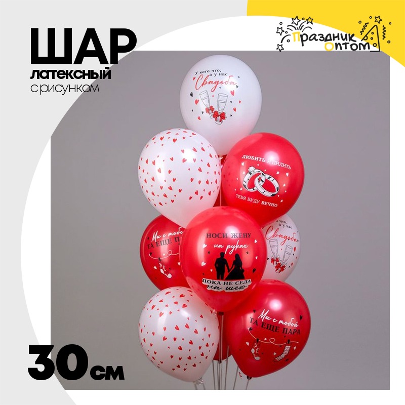 Шар латексный 30см Свадьба Юмор (Белый, Красный)