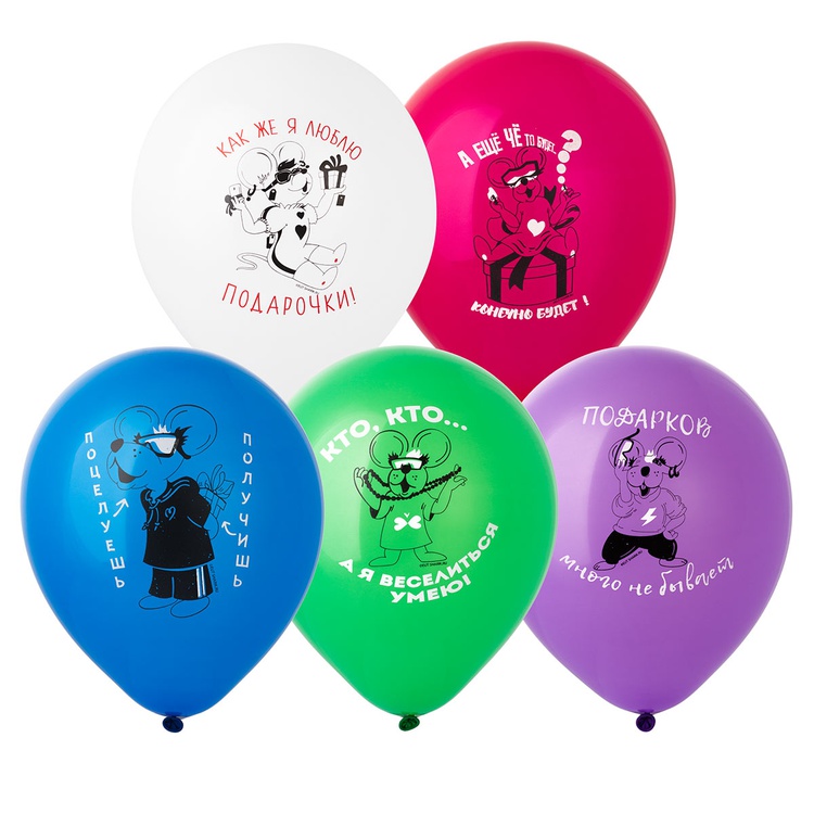 Шар латексный 30см Веселые Мышки (Ассорти)
