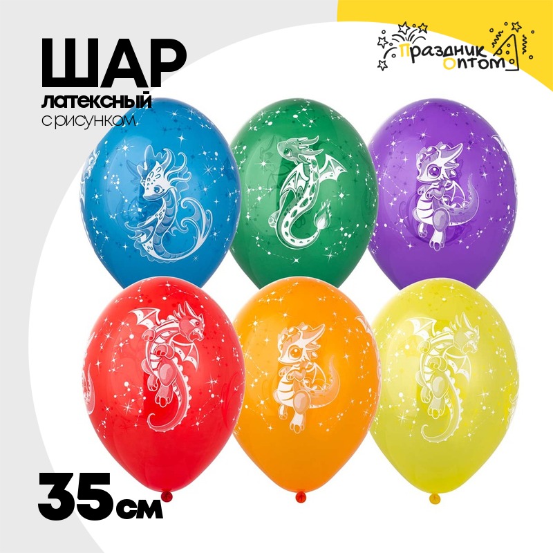Шар латексный 35см Дракончик (Ассорти)