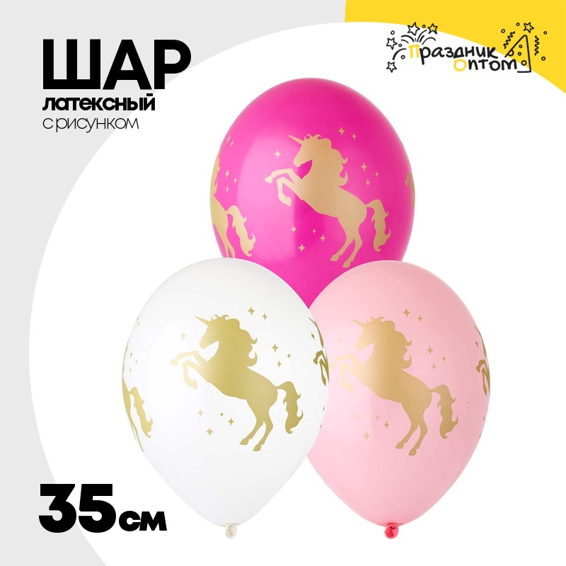 Шар латексный 35см Единорог (Ассорти)