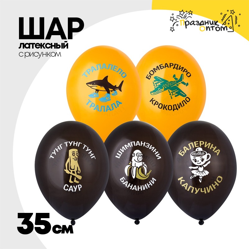 Шар латексный 35см Итальянские животные (Ассорти)