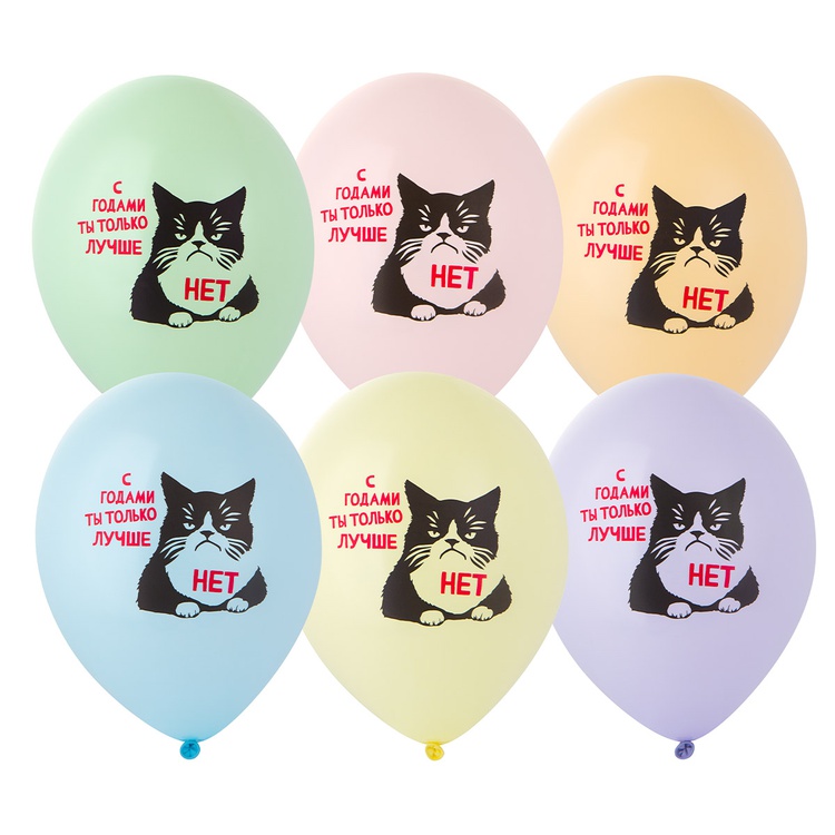 Шар латексный 35см Кот сердитый (Ассорти)
