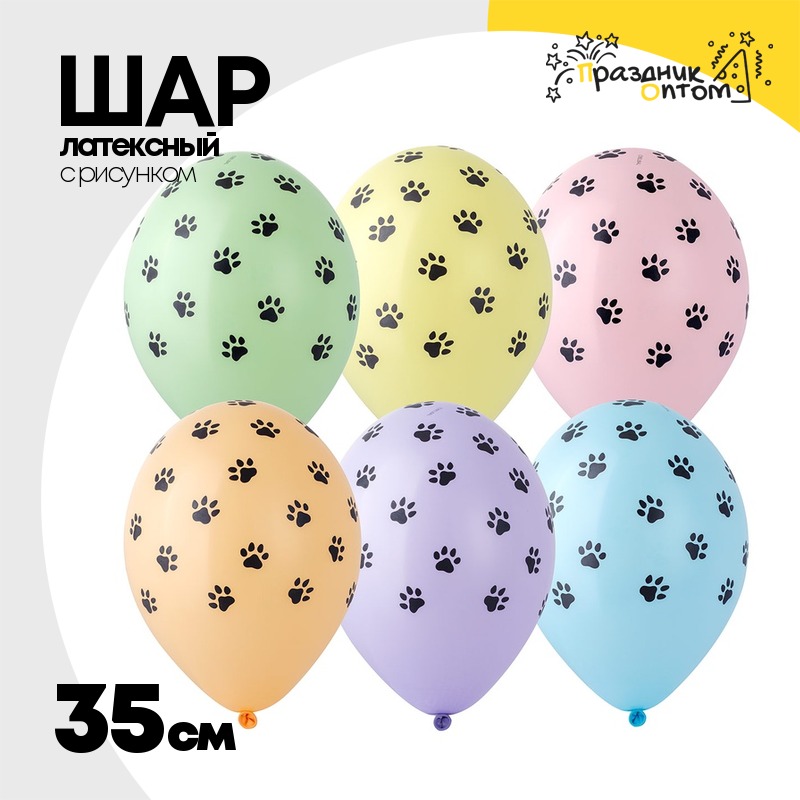 Шар латексный 35см Лапки (Ассорти)