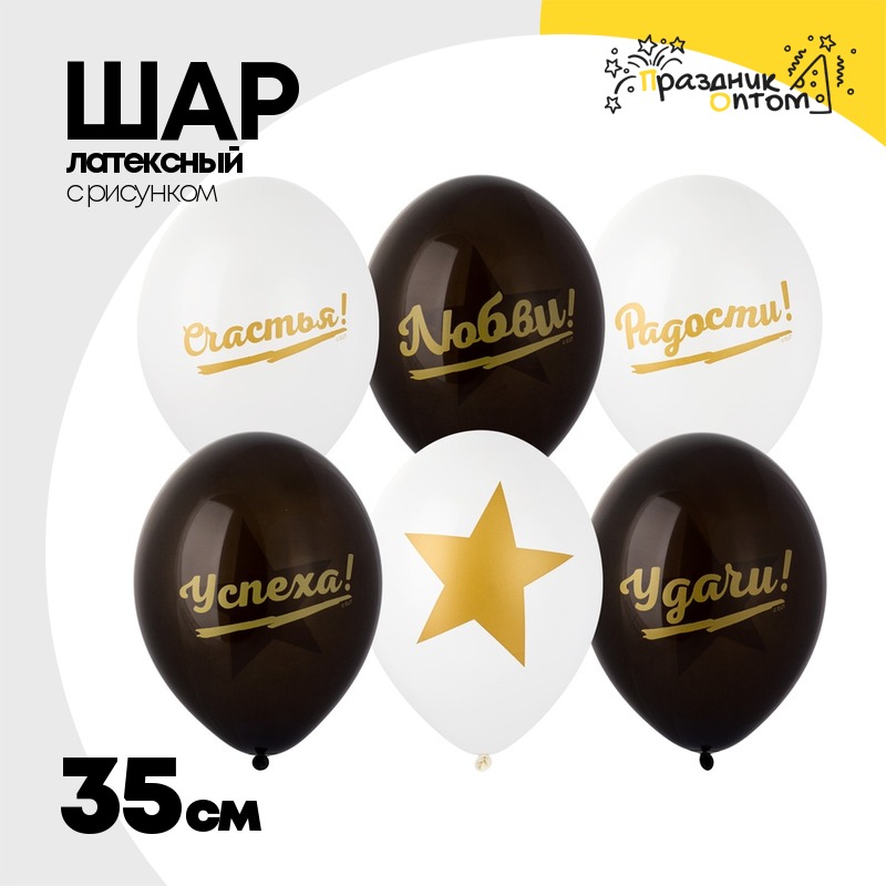 Шар латексный 35см Лучшие пожелания (Белый, Черный)