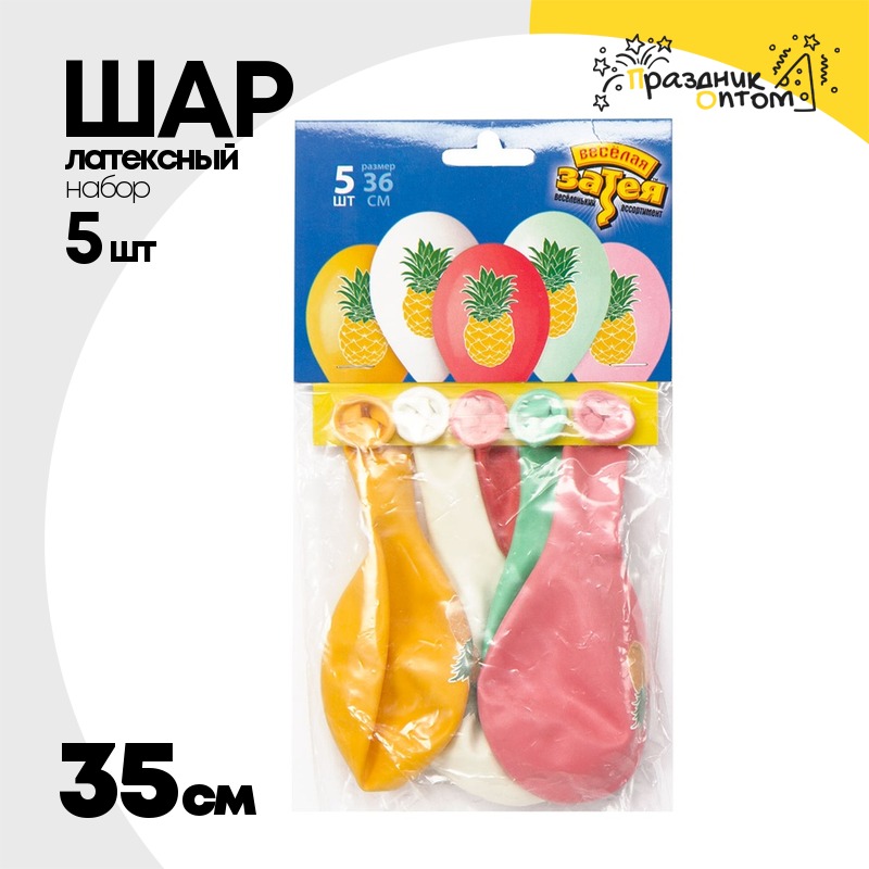Шар латексный 35см Набор 5шт Ананас (Ассорти)