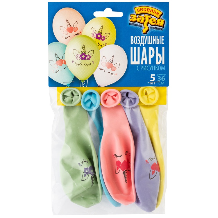 Шар латексный 35см Набор 5шт Единорог Голова (Ассорти)
