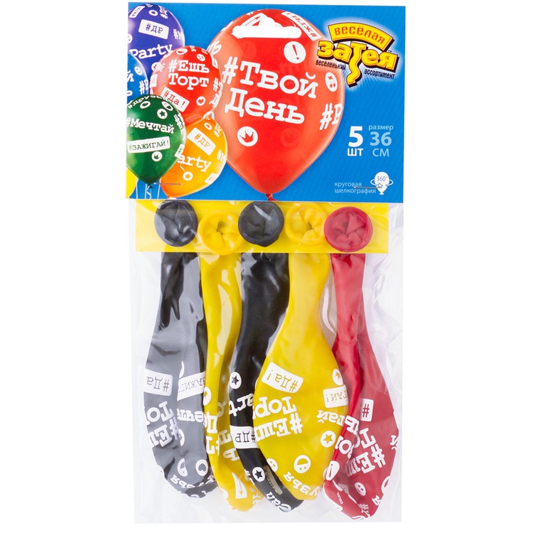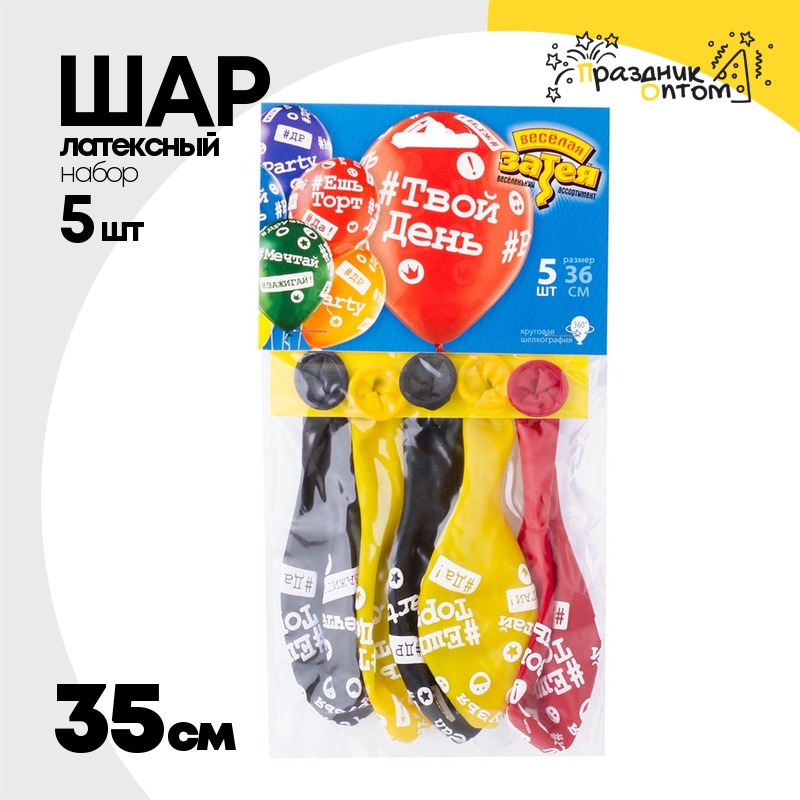 Шар латексный 35см Набор 5шт Хештеги (Ассорти)