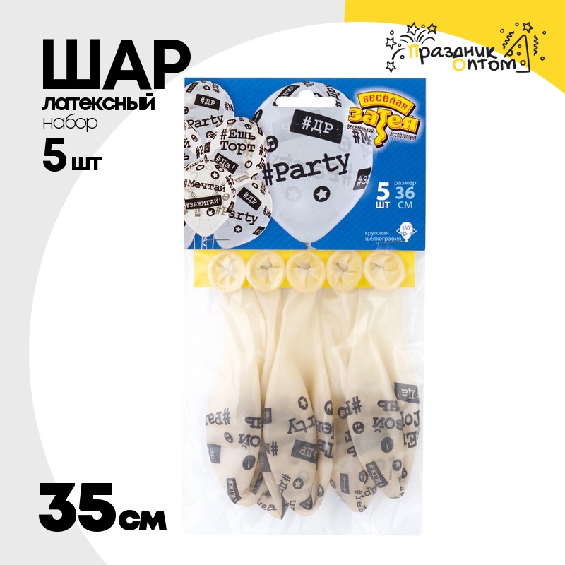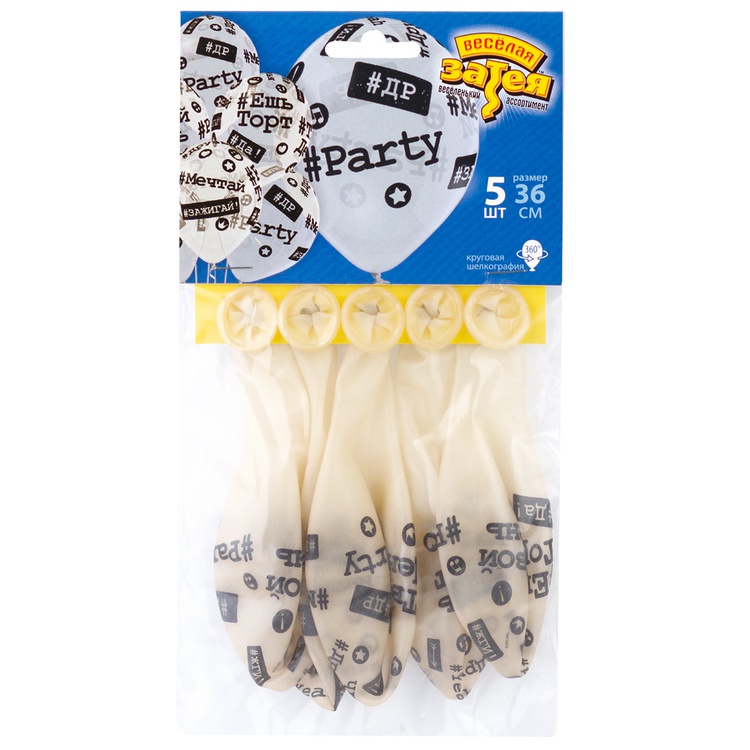 Шар латексный 35см Набор 5шт Хештеги (Прозрачный)