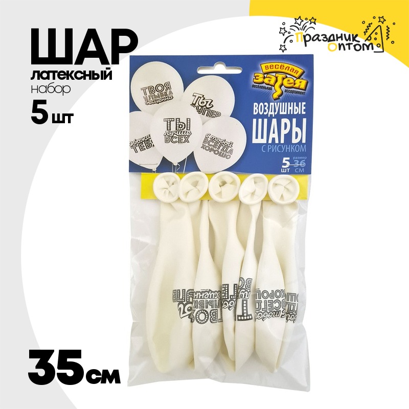 Шар латексный 35см Набор 5шт Хвалебные (Белый)
