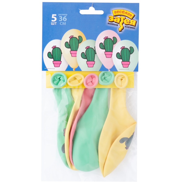 Шар латексный 35см Набор 5шт Кактус (Ассорти)
