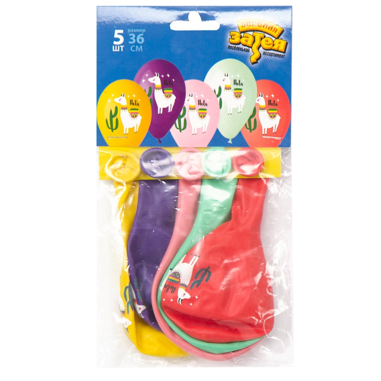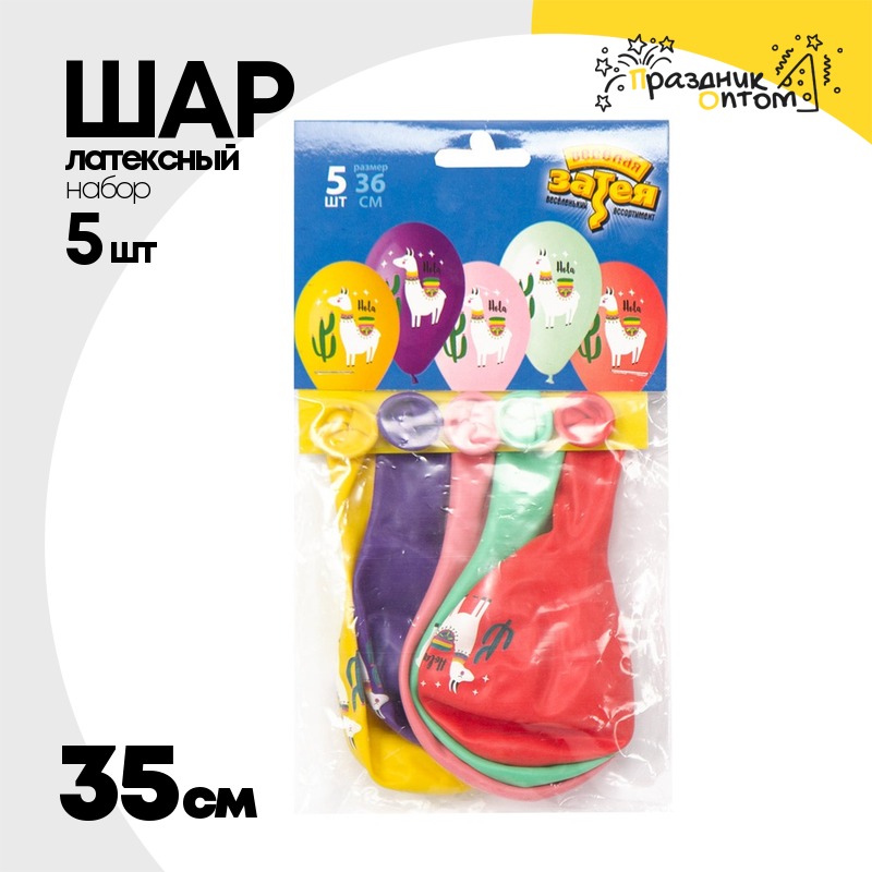 Шар латексный 35см Набор 5шт Лама HOLA (Ассорти)