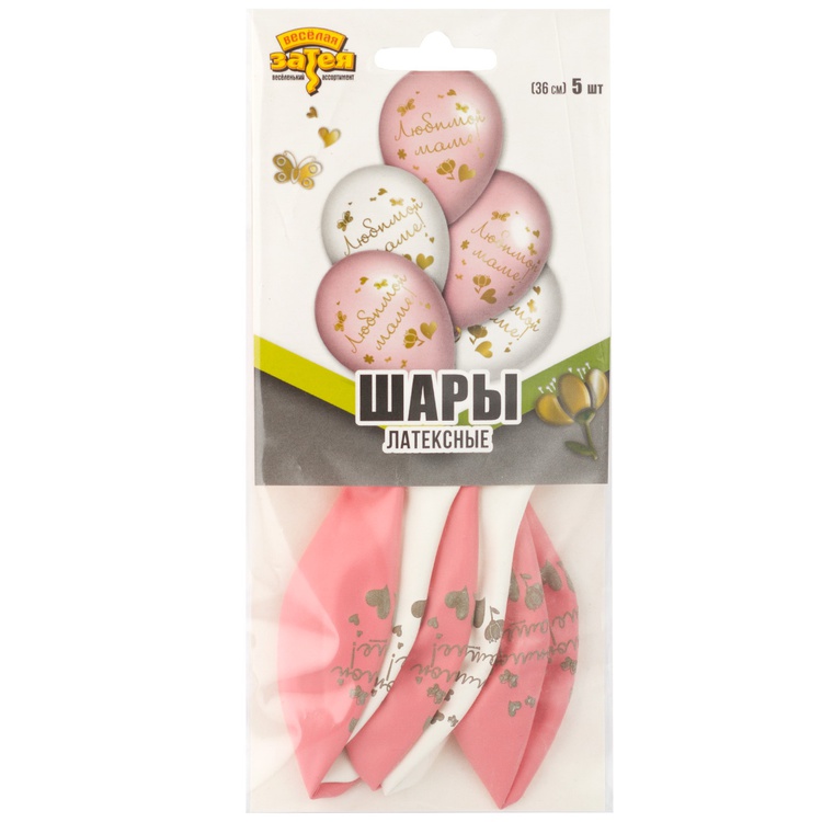 Шар латексный 35см Набор 5шт Любимой Маме (Ассорти)