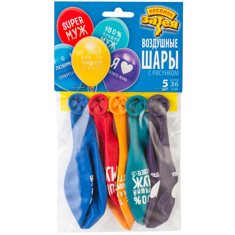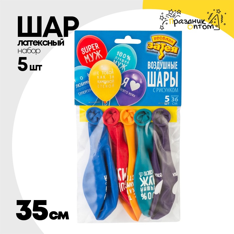 Шар латексный 35см Набор 5шт Любимый Муж (Ассорти)
