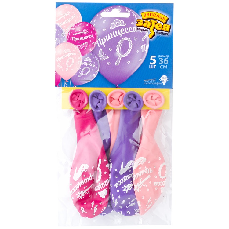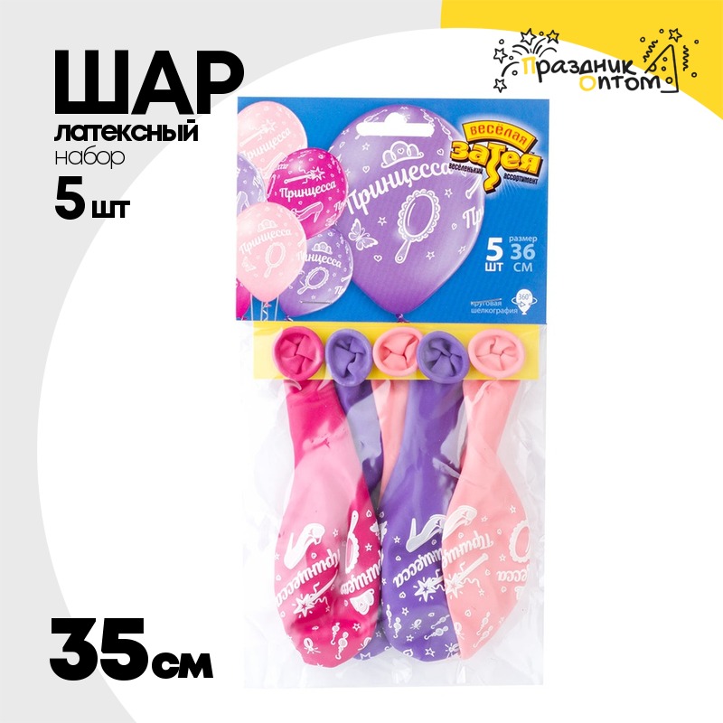 Шар латексный 35см Набор 5шт Принцесса (Ассорти)
