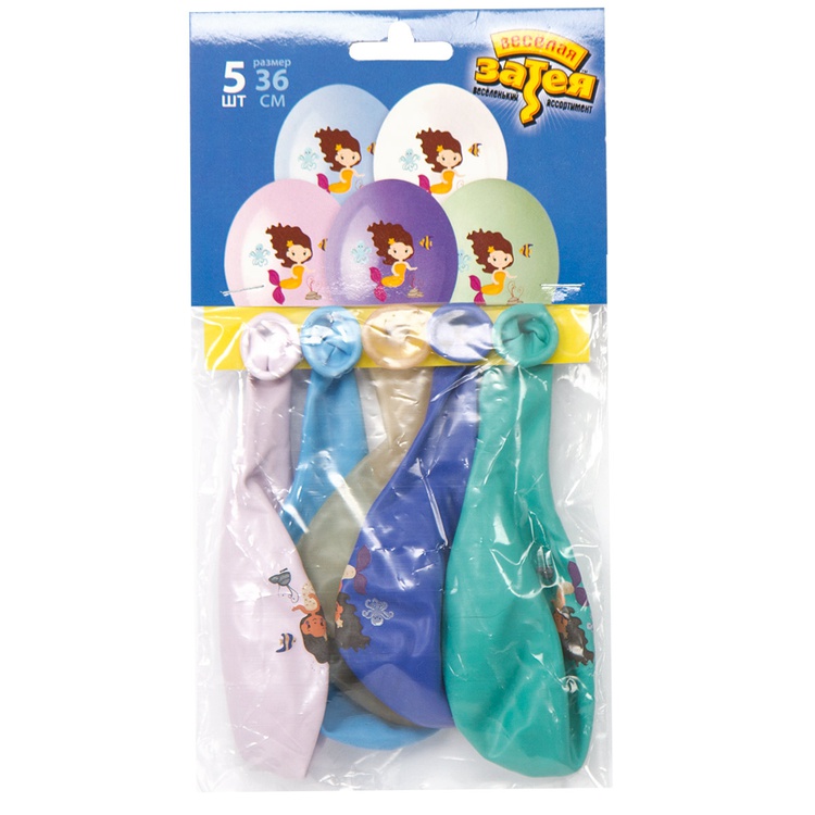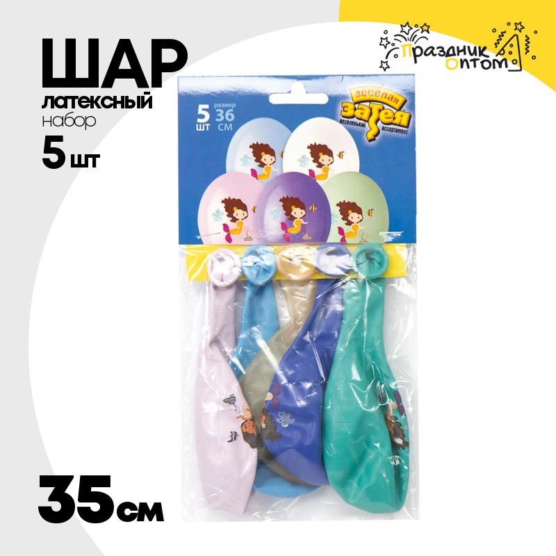 Шар латексный 35см Набор 5шт Русалочка (Ассорти)