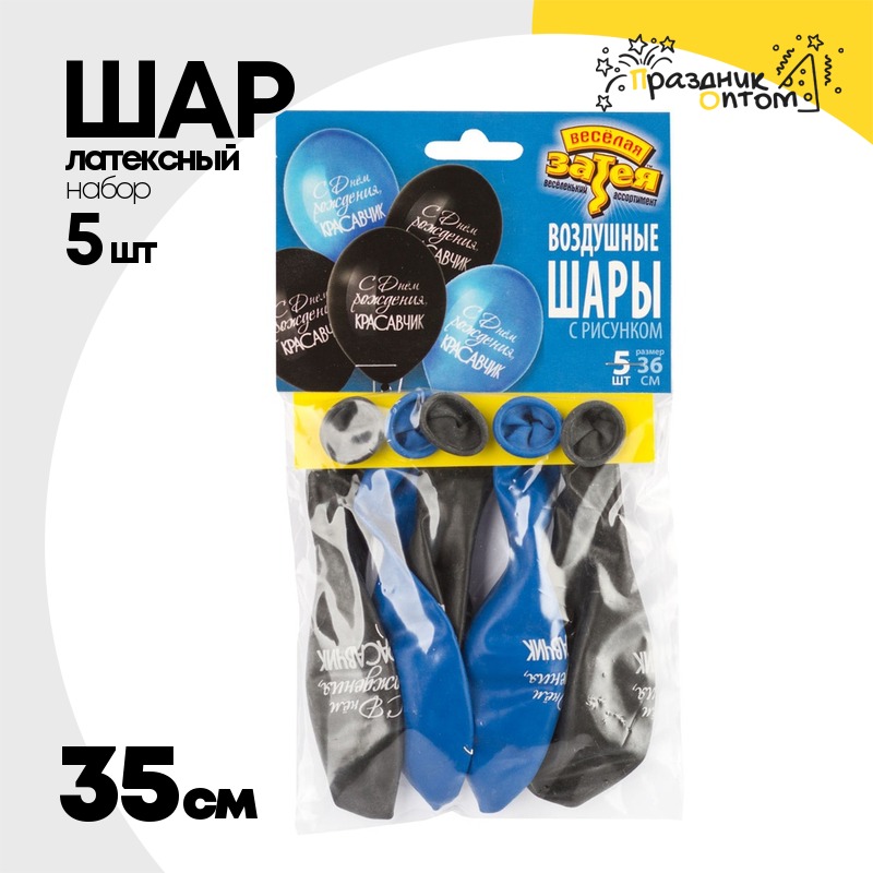 Шар латексный 35см Набор 5шт С ДР! Красавчик (Ассорти)