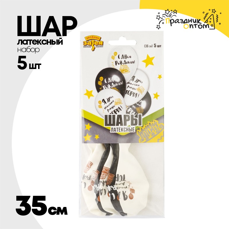 Шар латексный 35см Набор 5шт С ДР! Ради Торта (Белый, Черный)