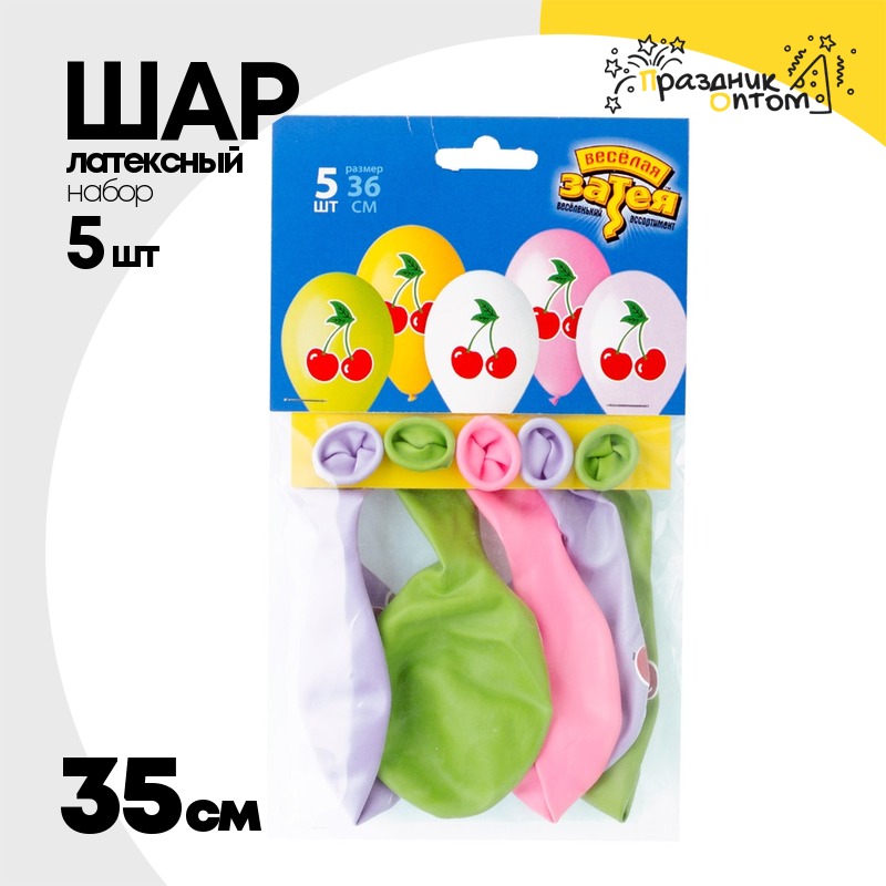 Шар латексный 35см Набор 5шт Вишня (Ассорти)