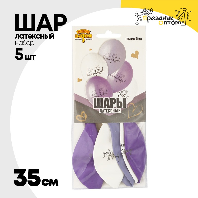 Шар латексный 35см Набор 5шт You Are Beautiful (Ассорти)