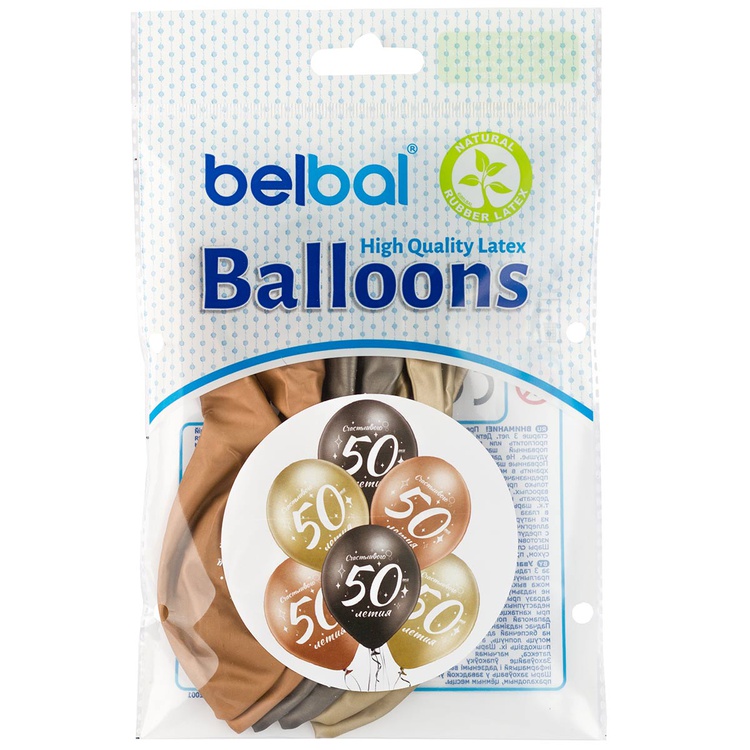Шар латексный 35см Набор 6 шт Юбилей - 50 (Ассорти)